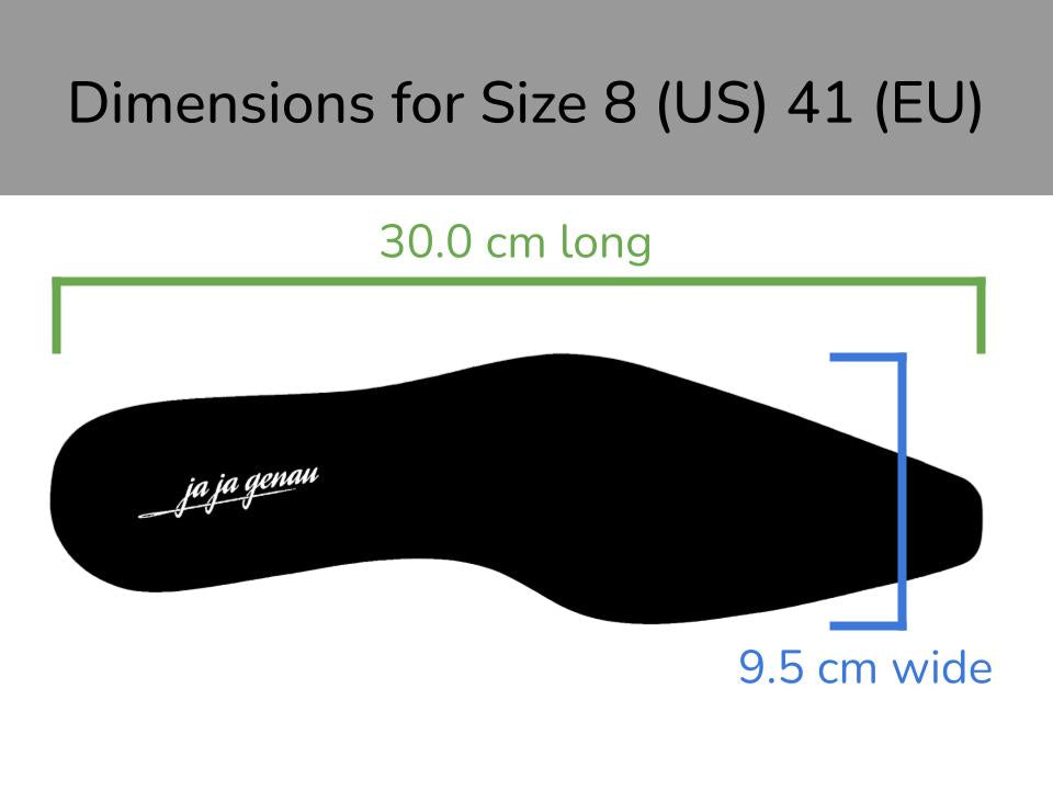 Ja Ja Genau shoes are tailored for a sleeker fit for men who typically have narrow feet. That means our shoes are crafted with a more streamlined silhouette, making them the perfect choice for men with slimmer feet. If you require a wider fit, these may likely feel a bit tight towards the front part of your foot.